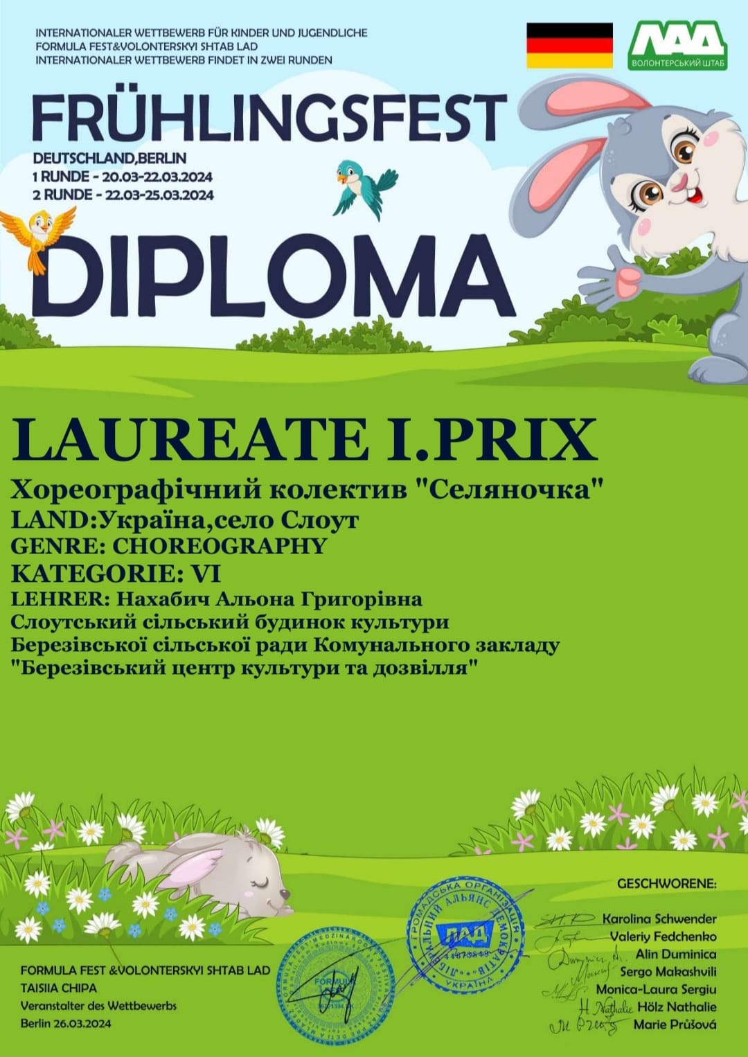 Нещодавно пройшов Міжнародний двотуровий фестиваль – конкурс мистецтв FORMULA FEST «Свято весни», м.Берлін, Німеччина – це міжнародний проект Україна – Німеччина.