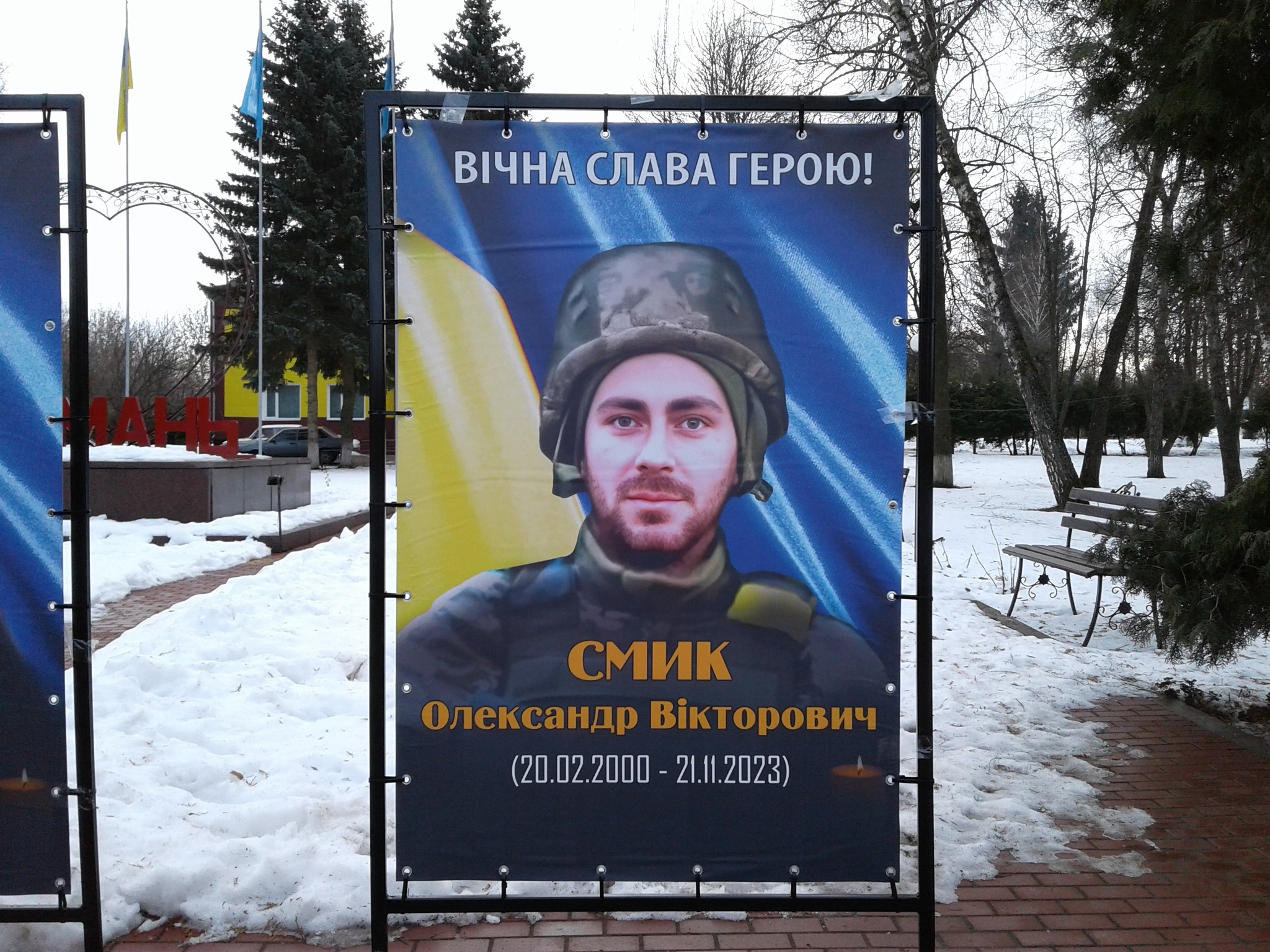 Смика Олександра Вікторовича, жителя села Уланове, військовослужбовця, який загинув під населеним пунктом Площанка Кремінського району Луганської області.