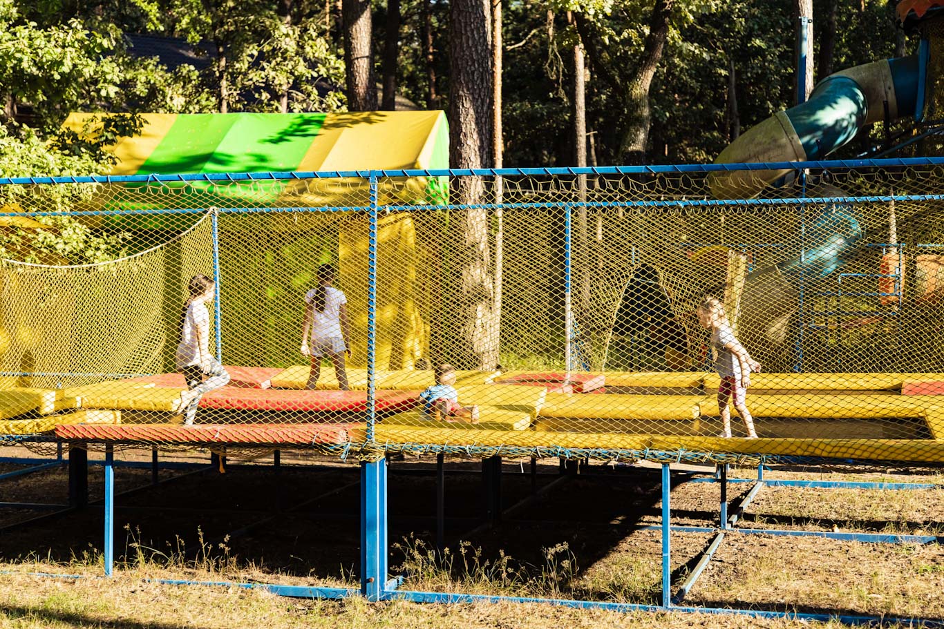 База відпочинку має чудове розташування — посеред соснового лісу на березі Десни. Неймовірно чисте повітря сприяє гарному оздоровленню дітей. Також для малечі передбачено чимало активних розваг. Не забули у комплексі й про дорослих. Однак давайте про все по черзі.