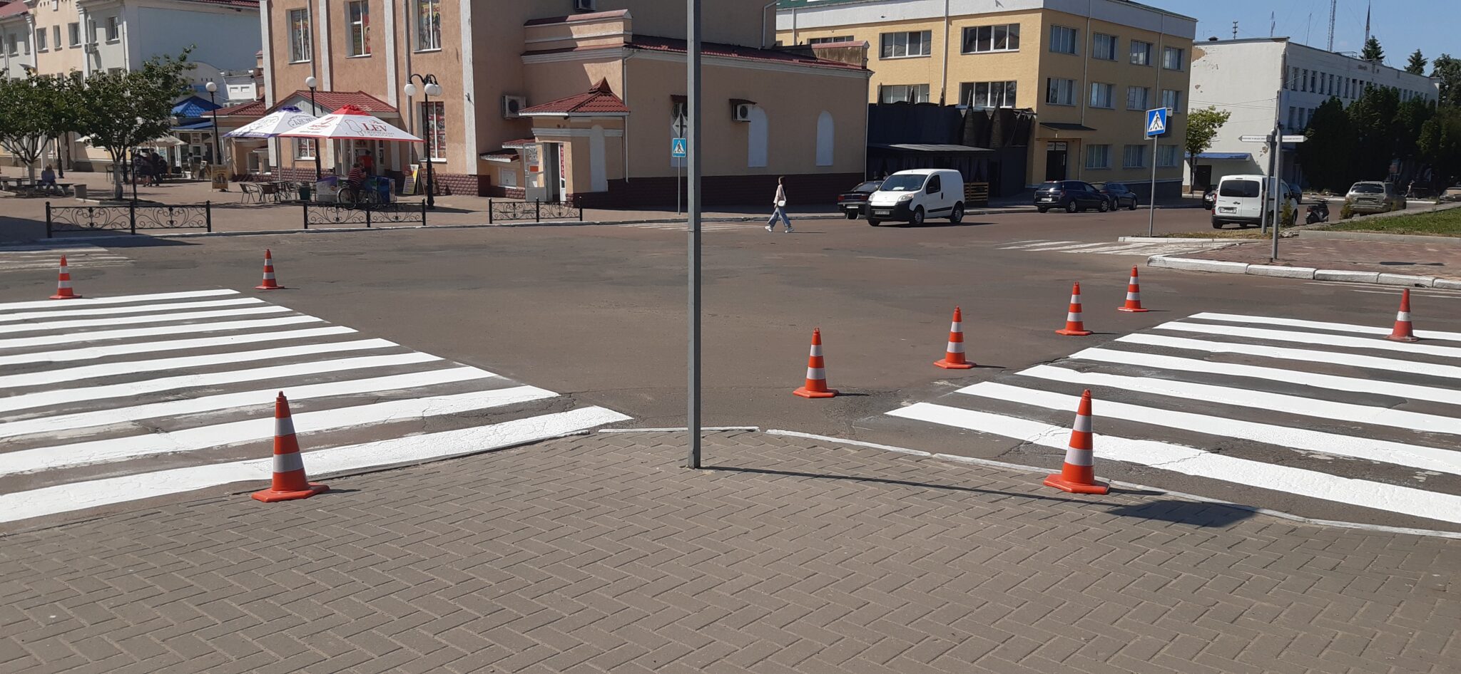 Дорожню розмітку наносять одразу на кількох пішохідних переходах, перекривши частину доріг. Тому учасникам дорожнього руху варто бути уважними та взаємоввічливими на цих ділянках шляху.