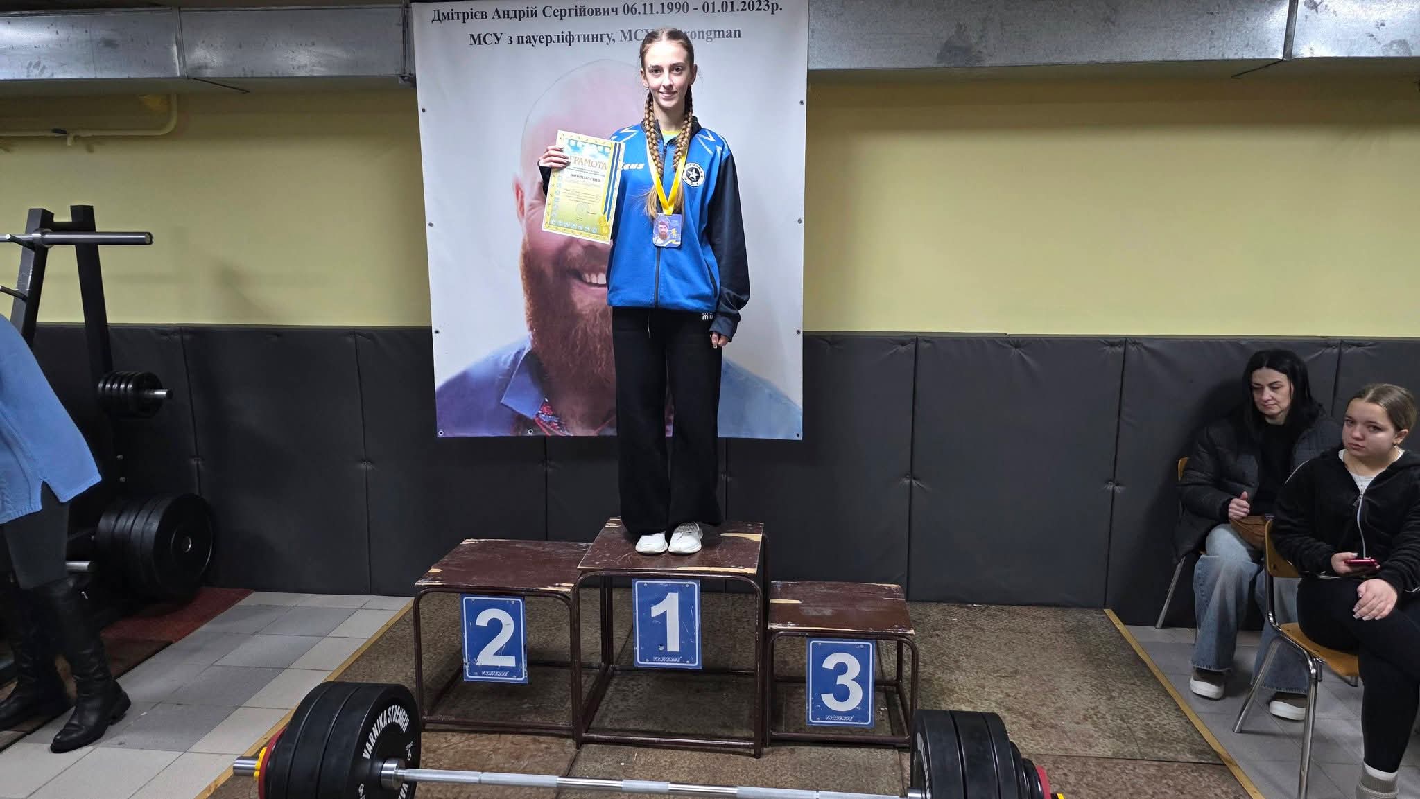 Справжній золотий фурор на змаганнях влаштувала жіноча частина команди. Ліза Бурчик виборола перше місце серед дівчат у ваговій категорії до 43 кг з результатом 30 кг.