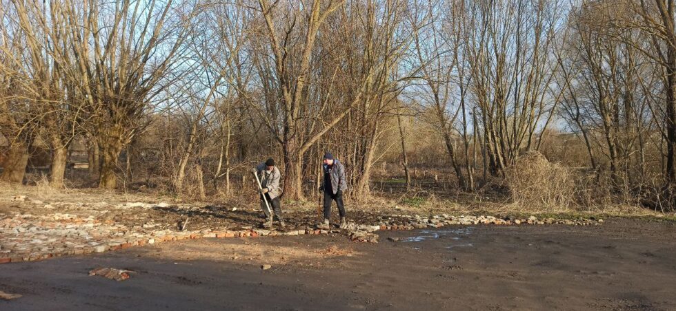 Підлаштувавшись під погодні умови з урахуванням стану ґрунту, молодий підприємець залучив своїх працівників, щоб здійснити сміливий замисел. Колективний ентузіазм спонукав підключитися до роботи і добровольців. Так, спільними зусиллями 11 чоловіків завзято долучилися до доброї справи. Зі слів Євгенія Петровича, працювали вони три дні і вже на частину дороги пішло приблизно 112 тон, а це 25 вантажівок!