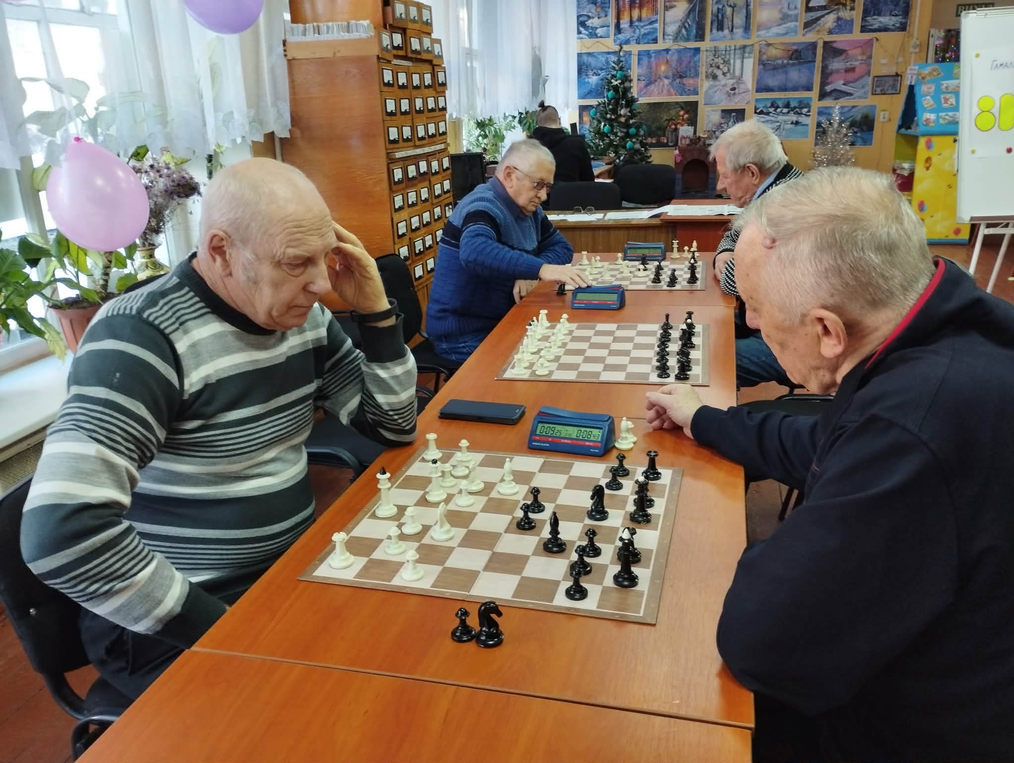 Попри святковий привід, на шахівницях панувала справжня «гроза». Десять досвідчених гравців Глухова довели: ветеранські шахи – це не про мирні нічиї, а про гострі атаки та складні ендшпілі.
