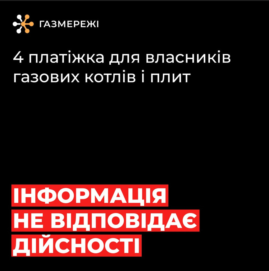 Інформація про «четверту платіжку за газ» не відповідає дійсності