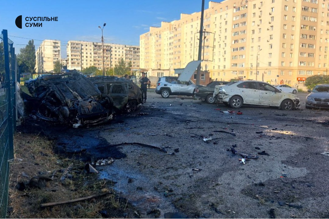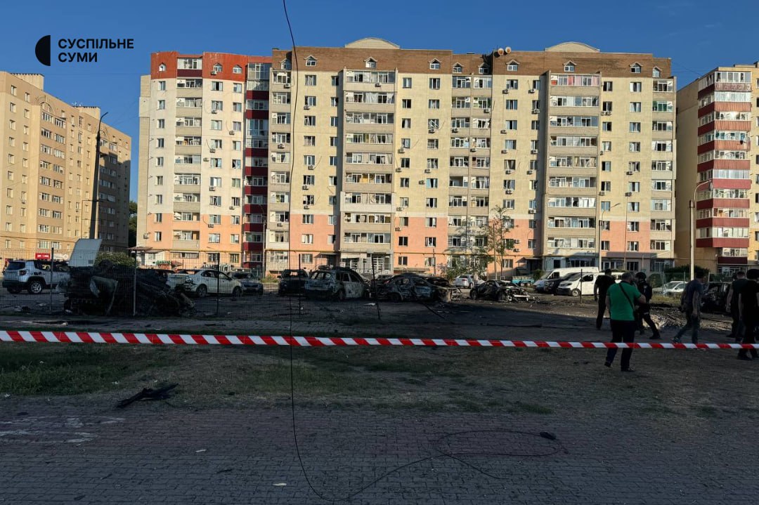 Вранці окупанти вдарили ракетою по центру Сум.Ворог випустив “Іскандер-К” по житловому кварталу міста.Снаряд влучив по автостоянці, спалахнули машини.Щонайменше дві людини постраждали.Відомо про десятки пошкоджених багатоповерхівок.