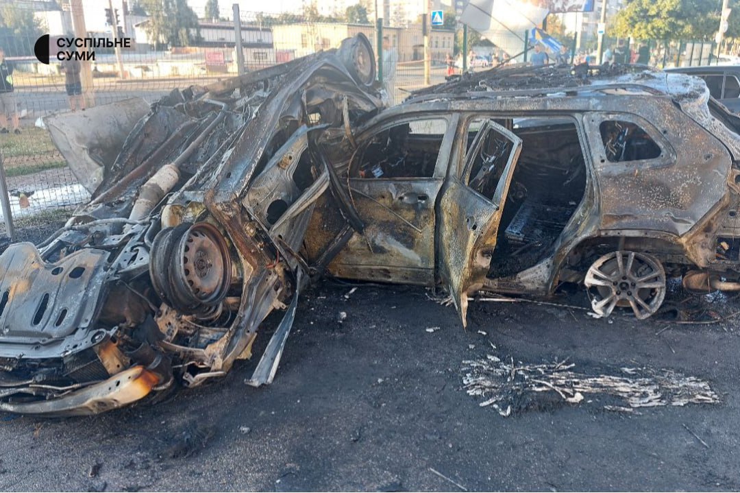 Вранці окупанти вдарили ракетою по центру Сум.Ворог випустив “Іскандер-К” по житловому кварталу міста.Снаряд влучив по автостоянці, спалахнули машини.Щонайменше дві людини постраждали.Відомо про десятки пошкоджених багатоповерхівок.