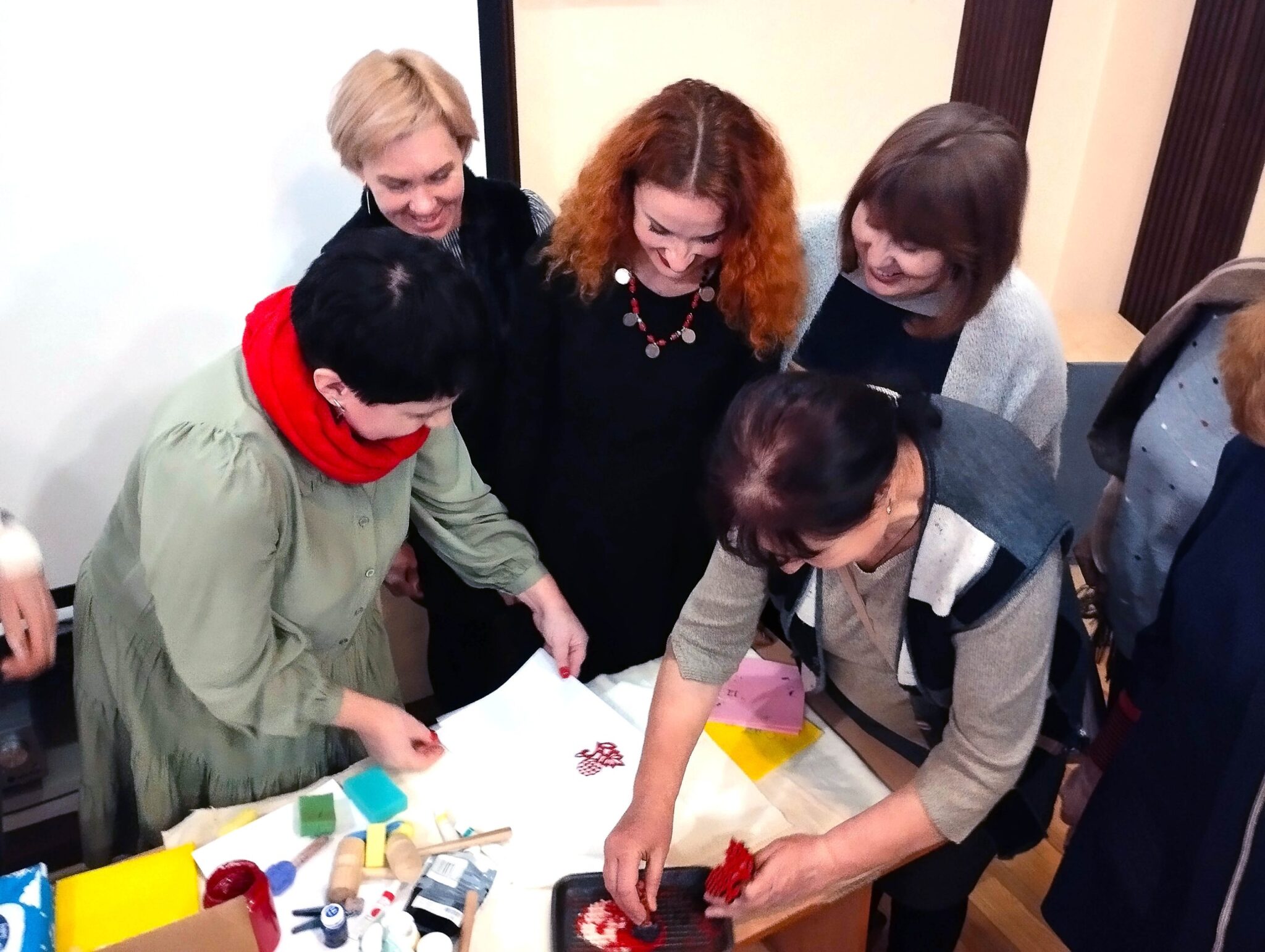 Творчість Галини Кулик та Олени Замули – це не лише мистецтво, але й спосіб життя, який надихає та збагачує. Цього дня у Заповіднику майстрині із задоволенням поділилися з гостями своїм досвідом та вмінням декорування тканини: провели майстер-клас із вибійки – традиційного українського мистецтва нанесення на полотно різноманітних візерунків і орнаментів за допомогою спеціальних штампів і фарби.