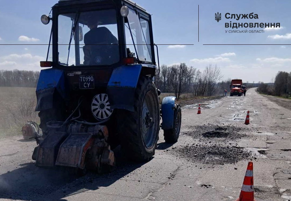 Підрядна організація на замовлення Служби відновлення у Сумській області працює над ліквідацією аварійної ямковості на автодорозі Р-44 Суми – Путивль – Глухів.