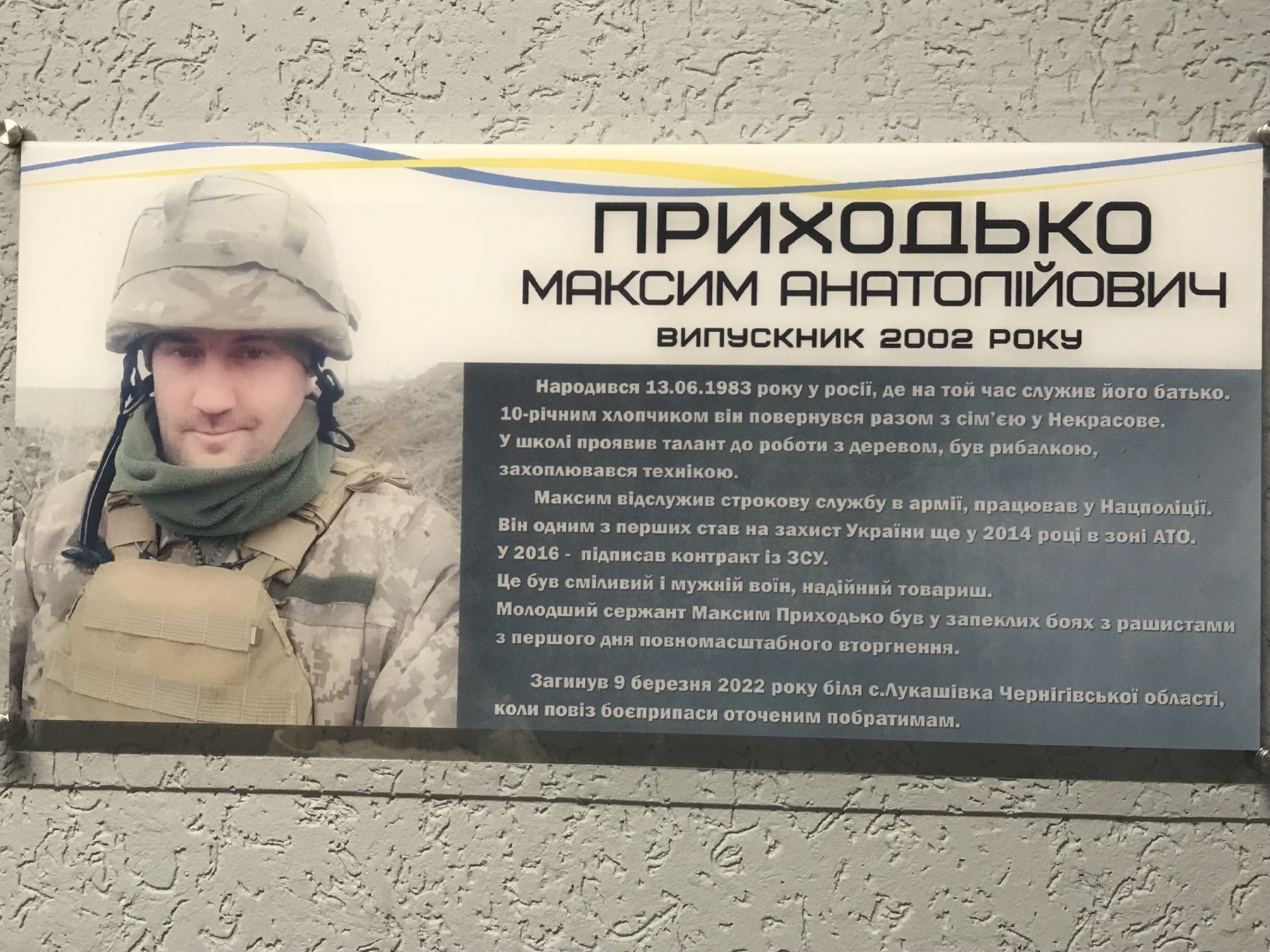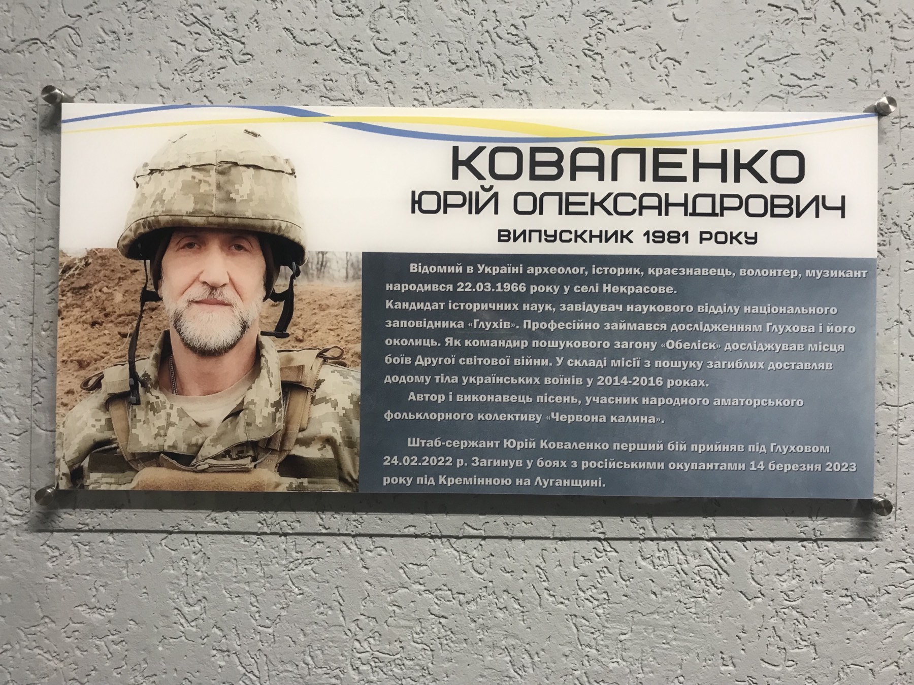 Меморіальні дошки розміщено у вестибюлі НВК, а банер висітиме в центрі села, інформує Глухівська міська рада