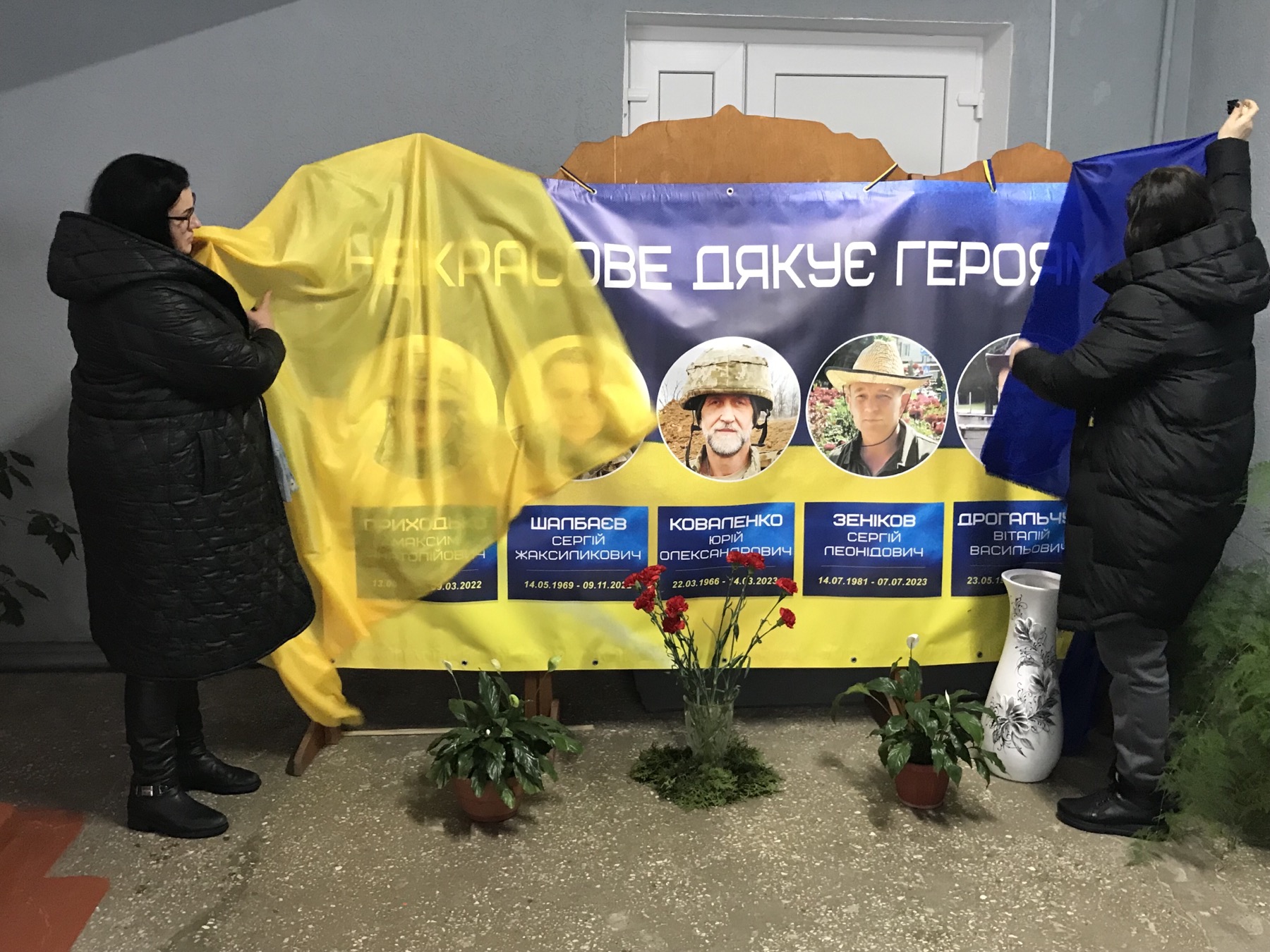 На лаконічну церемонію вшанування героїв запросили рідних загиблих, їхніх колег. Директор Некрасівського НВК Юрій Коломієць подякував дружинам воїнів за ідею, «Агроінвесту» – за фінансову допомогу у виготовленні.