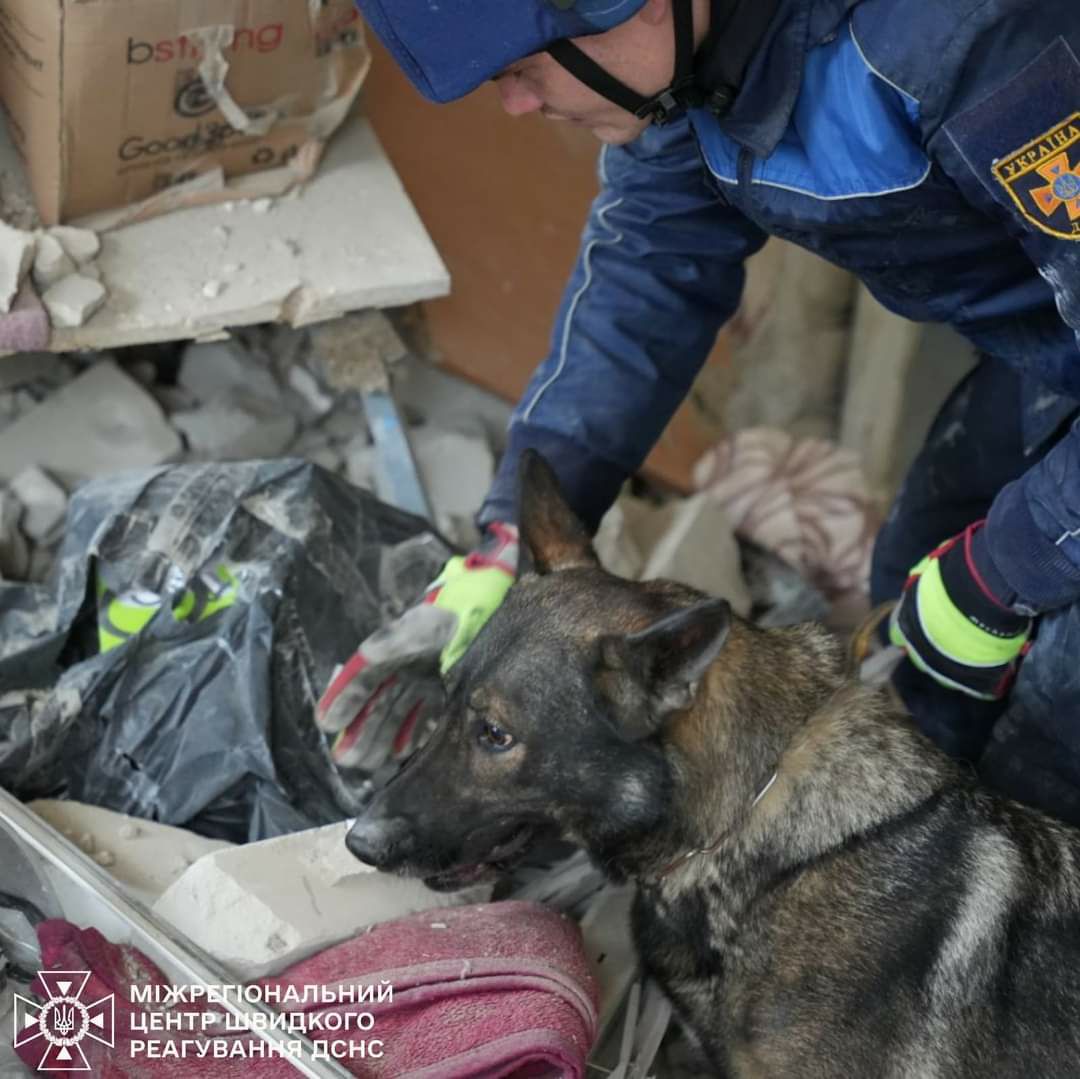 На місці ворожого удару у Глухові пліч-о-пліч із рятувальниками працювали чотирилапі пошуковиці