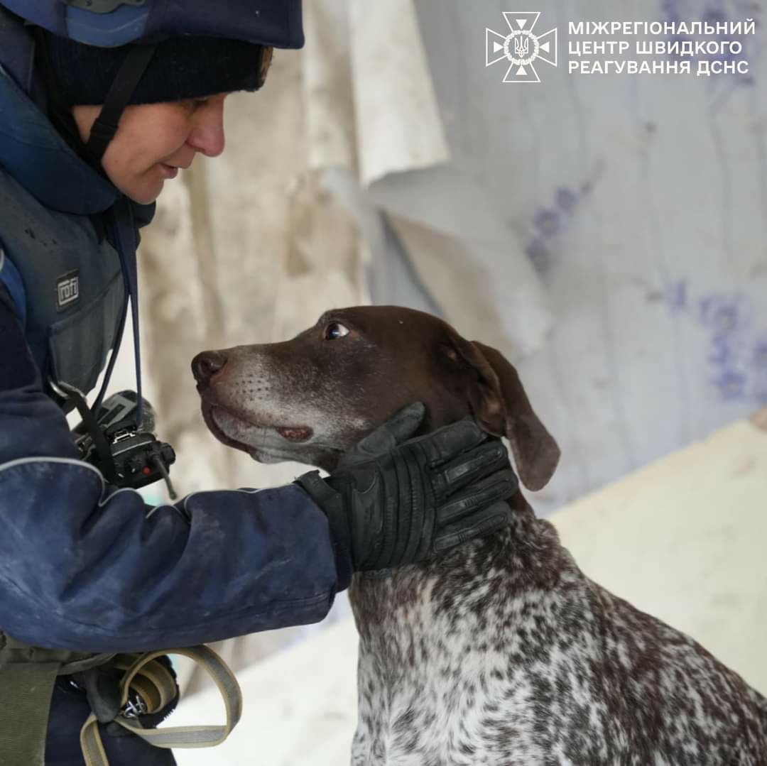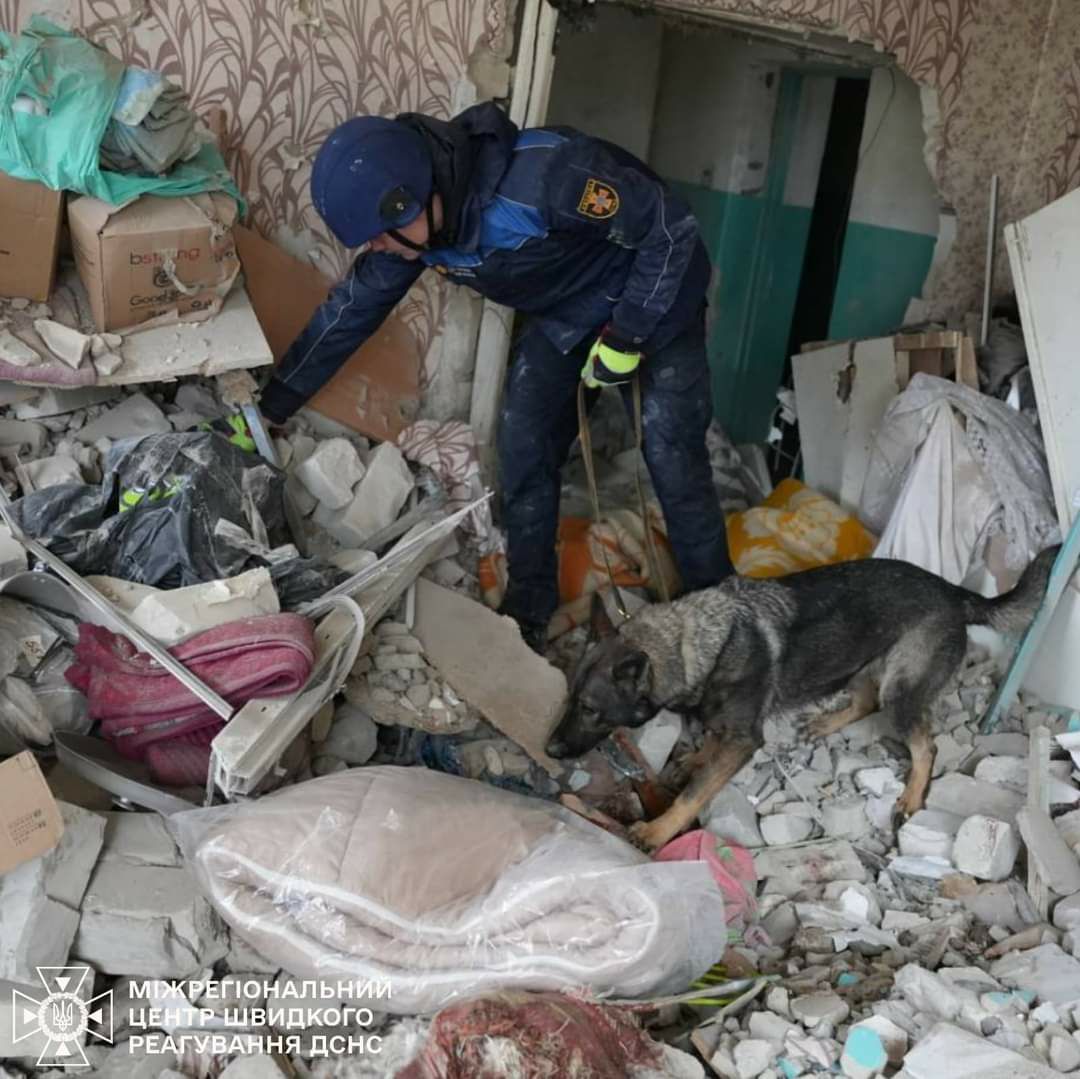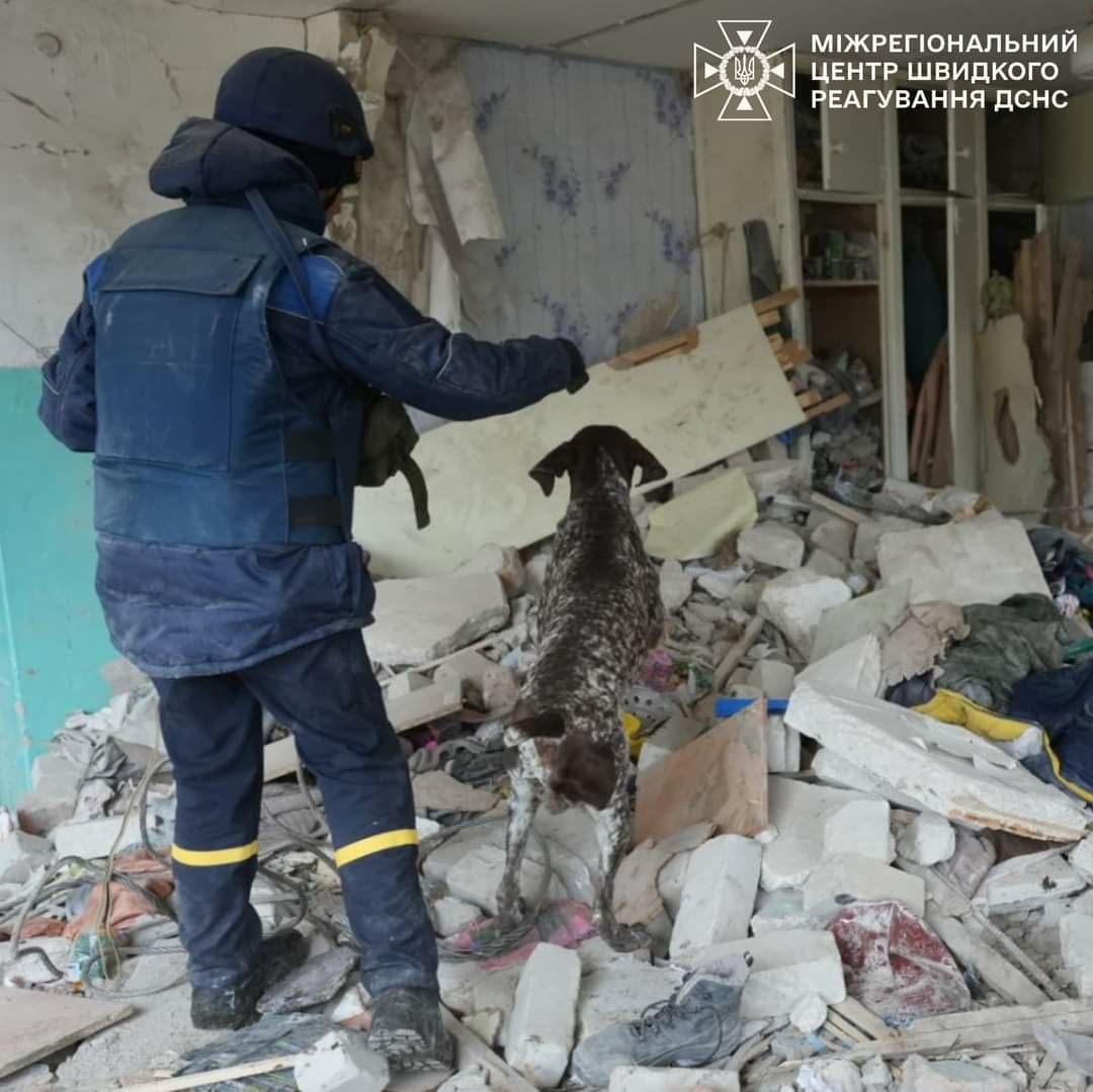 На місці ворожого удару у Глухові пліч-о-пліч із рятувальниками працювали чотирилапі пошуковиці