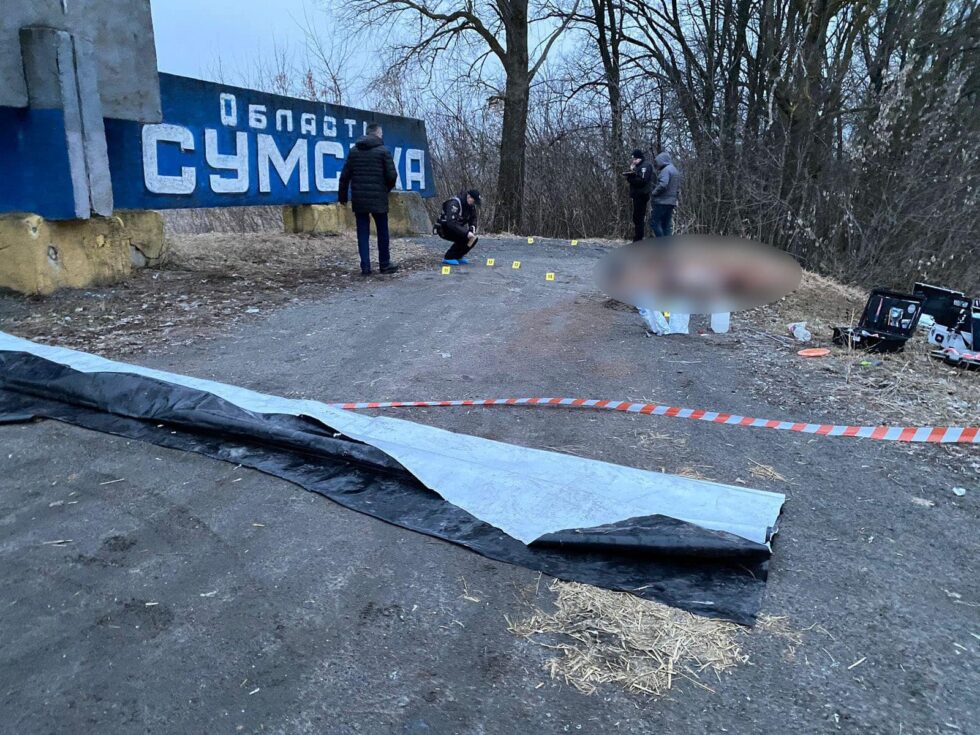 16 березня до поліції надійшло повідомлення про те, що поблизу стели, що розділяє Чернігівську та Сумську області, виявлено тіло чоловіка з слідами насильницької смерті. На місце пригоди негайно виїхала слідчо-оперативна група поліції на чолі з керівництвом.