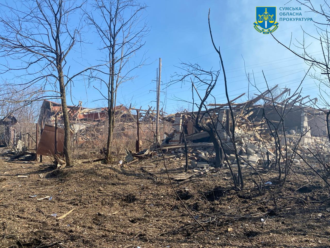 За даними слідства, 12 березня 2024 року зранку окупанти, застосовуючи заборонені міжнародним правом методи ведення війни, з території російської федерації здійснили 6 авіаційних ударів по цивільній інфраструктурі Великописарівської територіальної громади Охтирського району. Унаслідок атаки ворога пошкоджено приватний будинок, в якому перебувала жінка та її 5 неповнолітніх дітей – найстаршому хлопчику 12 років, найменшій дівчинці 4 роки. Усім членам родини знадобилась медична допомога. Також пошкоджено 2 автівки та щонайменше 5 приватних будинків.