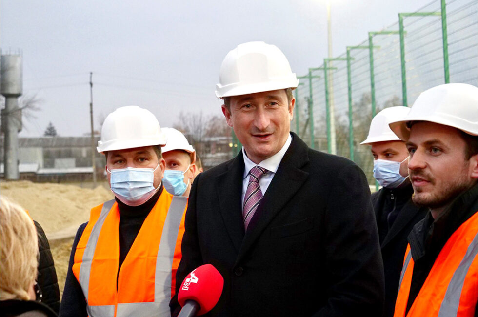 Також очільник Мінрегіону оглянув будівництво мультифункціонального спортивного комплексу H2О-Maxi та оновлений стадіон імені Володимира Куца у місті Тростянець. Арена розрахована на понад 1500 місць.