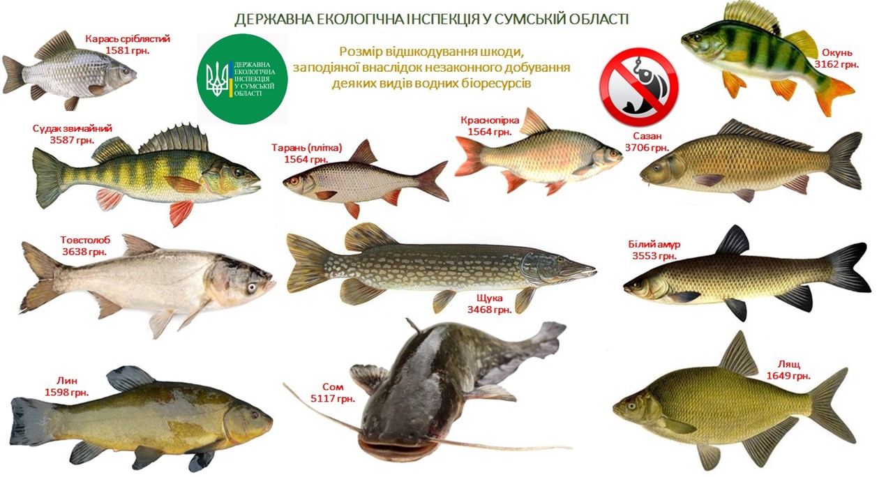 Задля контролю за дотриманням зазначених вимог і недопущення випадків браконьєрства Інспекцією здійснюватимуться перевірки водних об’єктів. У разі встановлення фактів недотримання вимог природоохоронного законодавства на порушників складатимуться протоколи, передбачені ст. 85 КУпАП. За грубе порушення правил рибальства передбачено штраф у розмірі до сорока неоподатковуваних мінімумів доходів громадян з конфіскацією знарядь і засобів вчинення правопорушення та незаконно добутої риби. Крім того, постановою КМУ №1209 від 21.11.2011 (зі змінами 2021 року) встановлено такси для обчислення розміру збитків, завданих внаслідок незаконного добування водних біоресурсів. Наприклад, незалежно від розміру та ваги риби, компенсація за кожного коропа складає 3706 грн., карася –1581 грн., окуня – 3162 грн., судака – 3587 грн., сома – 5117 грн., щуки – 3468 грн., рака – 3332 грн.