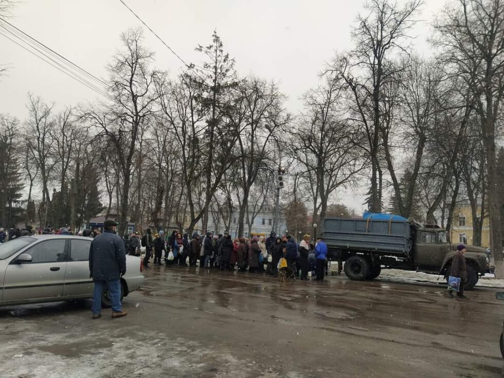 Вже наступного дня, 25 лютого, ми відчули нову реальність. Підприємство «Велетень» почало безкоштовно роздавати молоко. На центральну площу виїжджала бочка, до якої вишиковувалася величезна черга. Люди годинами стояли на морозі з банками, аби отримати хоч щось. Невдовзі полиці АТБ стали зовсім пустими – залишився лише хліб. Знайти яйця, овочі чи фрукти стало майже неможливим завданням.