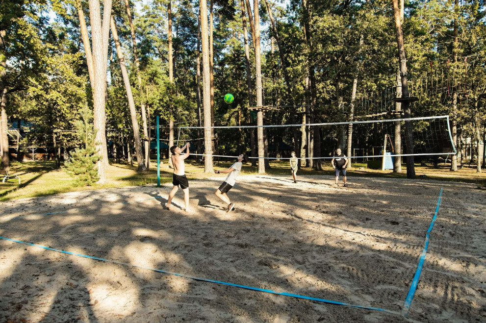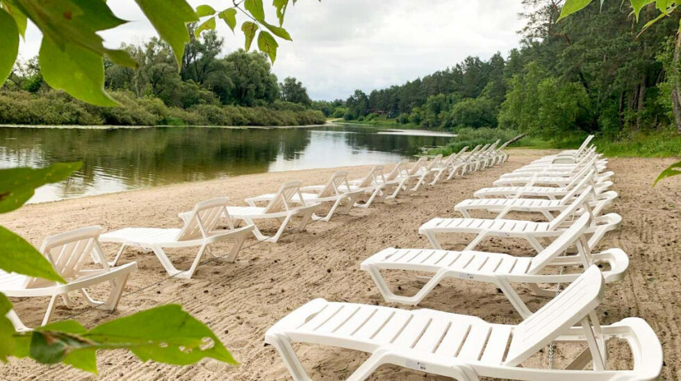 Sakramento розташоване на березі річки Десни — з чистою водою та затишним піщаним пляжем. Цьогоріч пляж було збільшено, з’явилися там і додаткові шезлонги, щоб кожен міг почуватися комфортно. Діти можуть купатися, будувати замки з піску, грати в м’яч чи просто плескатися на мілководді. А батьки – нарешті видихнути та відпочити від спеки в тіні сосен.