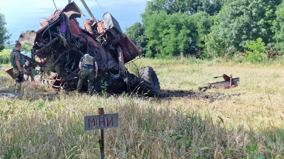 «Місцевий 60-річний фермер, аби зібрати врожай зернових, виїхав на поле, яке було промарковане спеціальними знаками про наявність на ньому вибухонебезпечних предметів. В результаті наїзду на одну з мін колесом, вона вибухнула. Здетонувала й інша, що знаходилася поряд. Чоловіка з тяжкими травмами госпіталізовано», – коментує начальник вибухотехнічного відділу ГУНП в Сумській області Олег Євлаш.