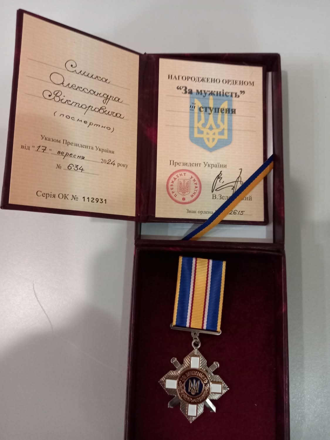 ОЛЕКСАНДРА СМИКА ПОСМЕРТНО НАГОРОДЖЕНО ОРДЕНОМ