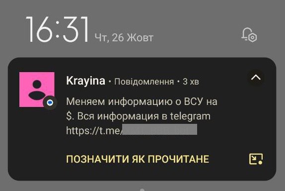 Росіяни розсилають мешканцям прикордоння повідомлення з пропозицією обміняти дані про ЗСУ на гроші