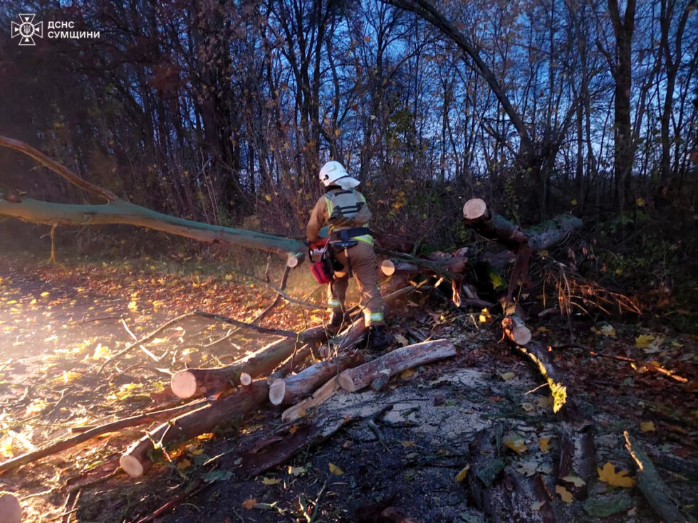2 листопада, о 05:44 на телефонну лінію «101» надійшла інформація про необхідність надання допомоги у Шосткинському районі. За попередніми даними, поблизу с. Привілля сильні пориви вітру зламали дерево, яке впало на проїзджу частину дороги.