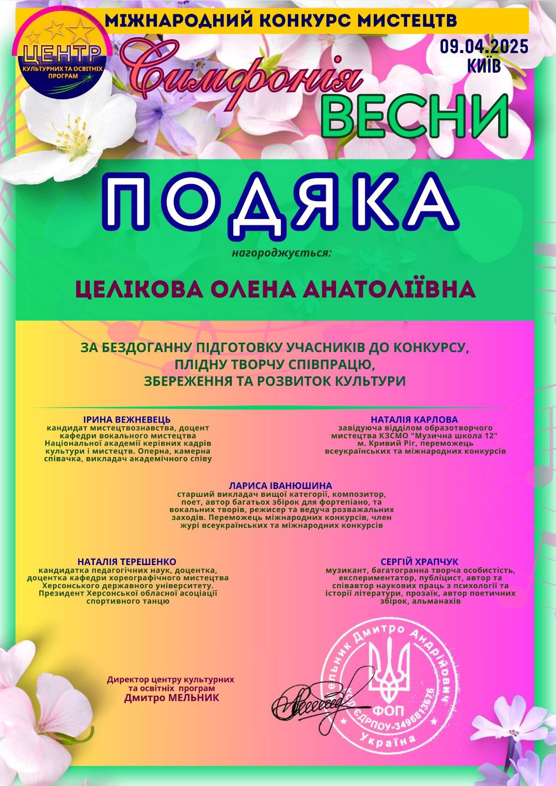Нещодавно в м.Київ відбувся Міжнародний конкурс мистецтв “Симфонія весни”.