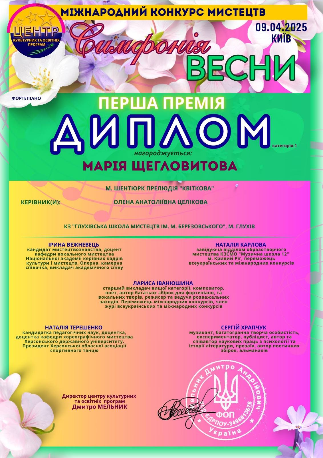 Талановита глухівчанка перемогла у міжнародному конкусі мистецтв “Симфонія весни”