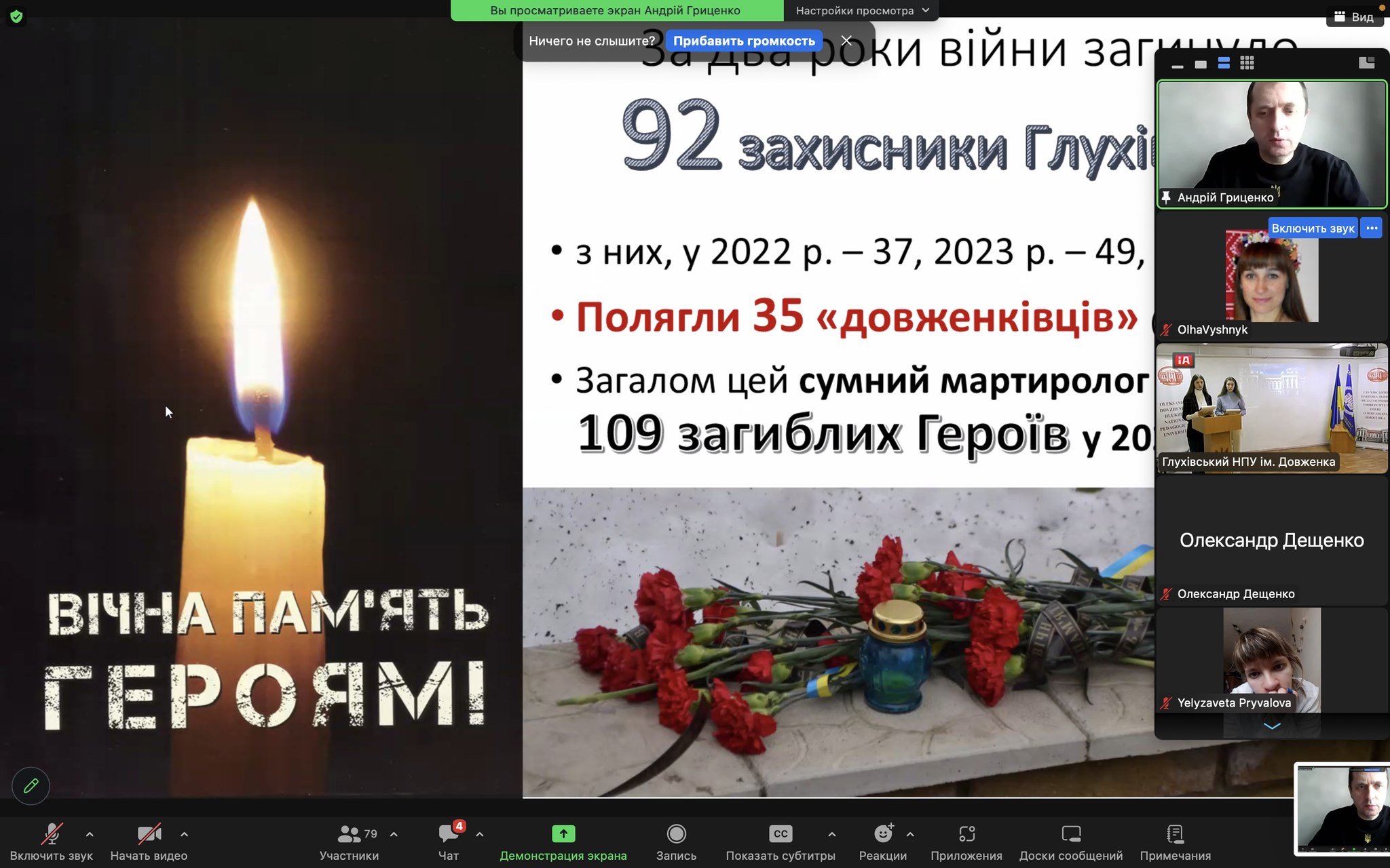 У Глухівському університеті поіменно згадали полеглих на війні довженківців