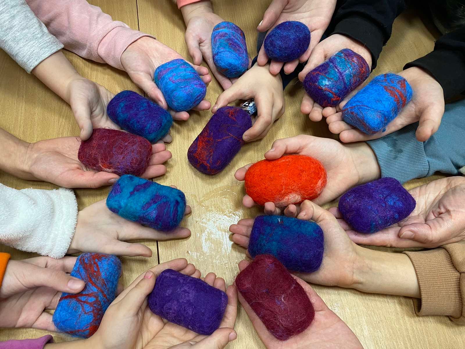 Вона ознайомила вихованців з основними механізмами миловаріння, з тонкощами комбінування інгредієнтів і кольорів. Давня техніка рукоділля – валяння вовни – також стала у пригоді, прикрасивши вироби з мила.