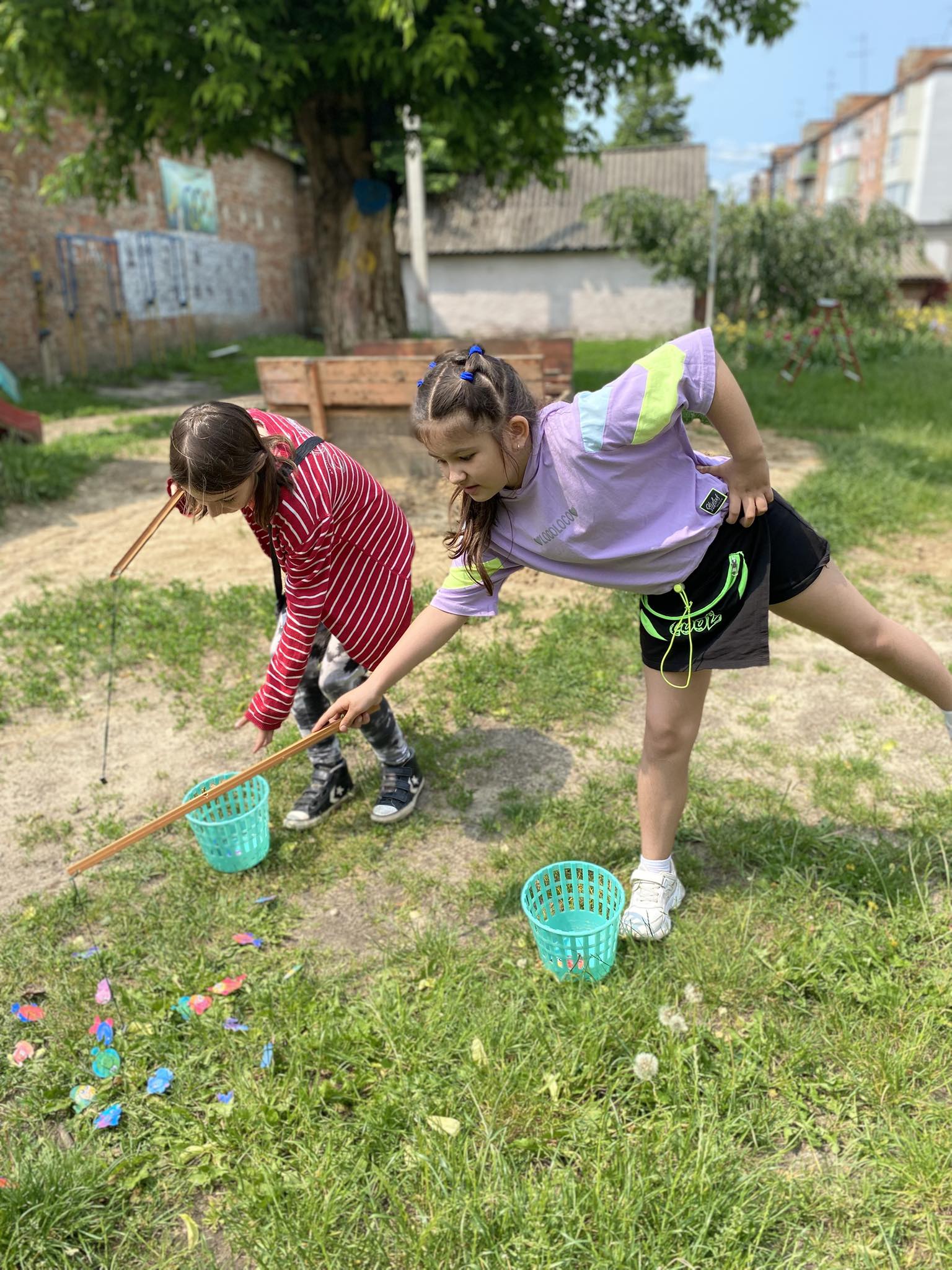 А далі — почалося справжнє свято руху й сміху! Методистка Катерина Мурач запросила всіх у гру: бігали з м’ячем — ух, які були віражі! — і ловили рибку прямо на траві! Така “риболовля” — це щось між веселощами та тренуванням на уважність і драйв.