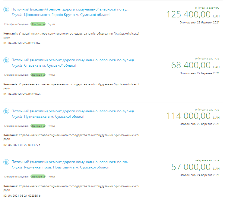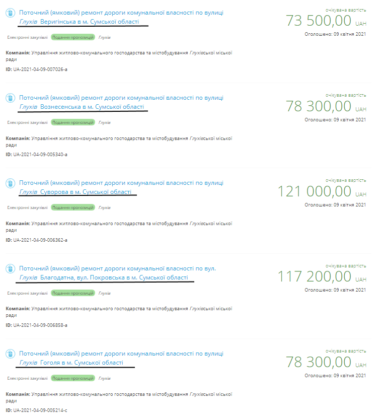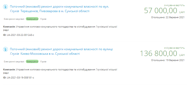 Согласно данным системы электронных закупок “Prozorro”, текущие ремонты дорог планируют провести как на центральных улицах города, так и на окраине. Заказчиком выступает Управление жилищно-коммунального хозяйства и градостроительства Глуховского горсовета. Подрядная организация будет определена путем проведения открытых торгов.