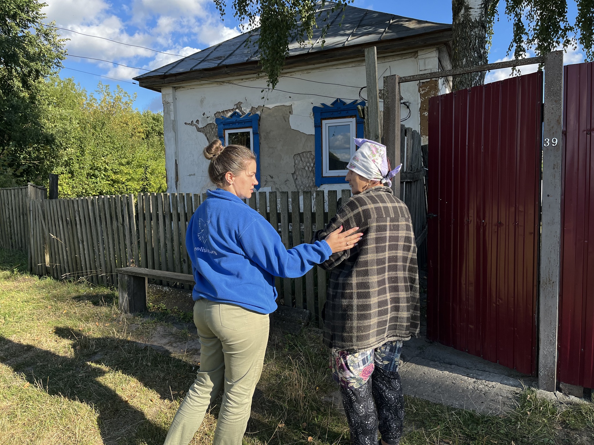 “Слава богу, що я була у сусідки на іншому краю села, а так не знаю, що й було б”, – говорить жінка, в якої постраждала оселя та ділиться своїми переживаннями з працівниками Проліска – Конотоп, які екстрено здійснили виїзд до села для видачі будівельних матеріалів для ремонту пошкодженого житла.