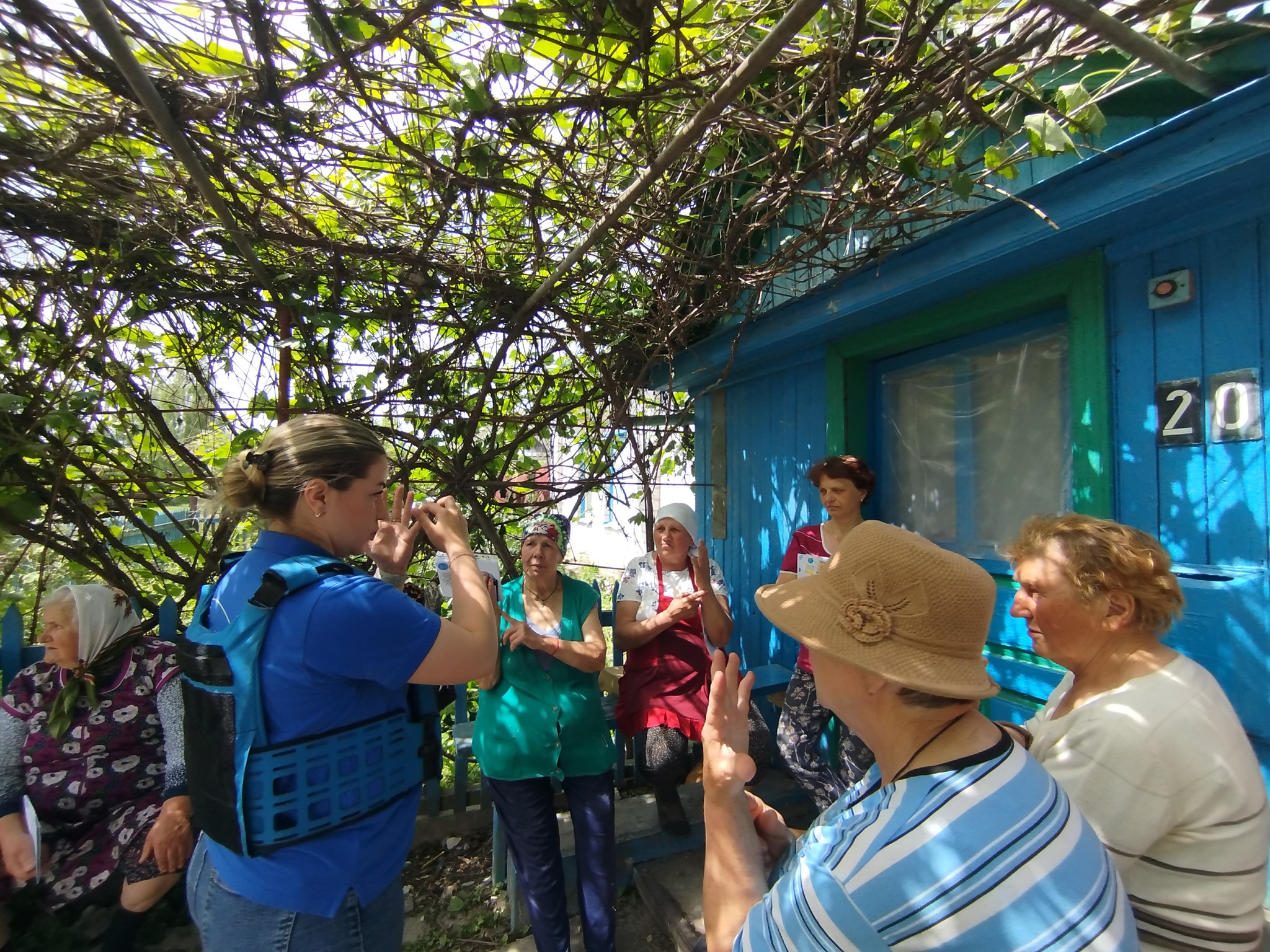 «Я була на городі, поралася, тут чую гудить, летить, вибухає. Я під яблуню заховалася, а воно ще свистить і так гучно вибухає… Наче не було такого раніше. Так і сиділа я під яблунею поки не стихло, а тоді сусіди прибігли підняли мене, лікар миттю приїхав оглянув, каже, у вас все добре, а я й не вірю ще сама, що жива лишилася. Хати майже немає. Сарай до половини завалився. Курочки мої полякані до сусідського забору притулилися й стоять усі гуртом. Кіт і собака до мене притулилися, куди я – туди й вони. Я обійду хату з одного блоку – плачу, гляну з іншого – плачу, і вони за мною слід у слід йдуть, наче бояться, що покину. Нікуди я вже з своєї землі не подінуся, тут буду жити, хай буде, що буде», – ділиться пережитим пані Олена.