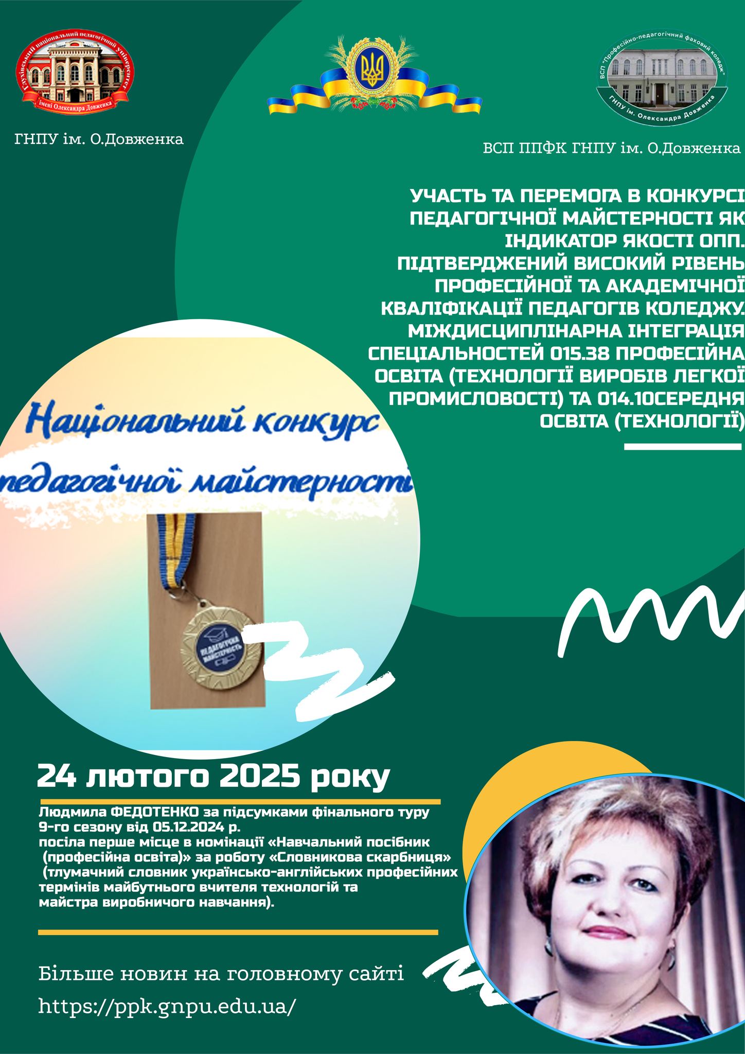 Яскравим прикладом цього є перемога викладачки англійської мови Людмили Федотенко в національному всеукраїнському відкритому конкурсі педагогічної майстерності.