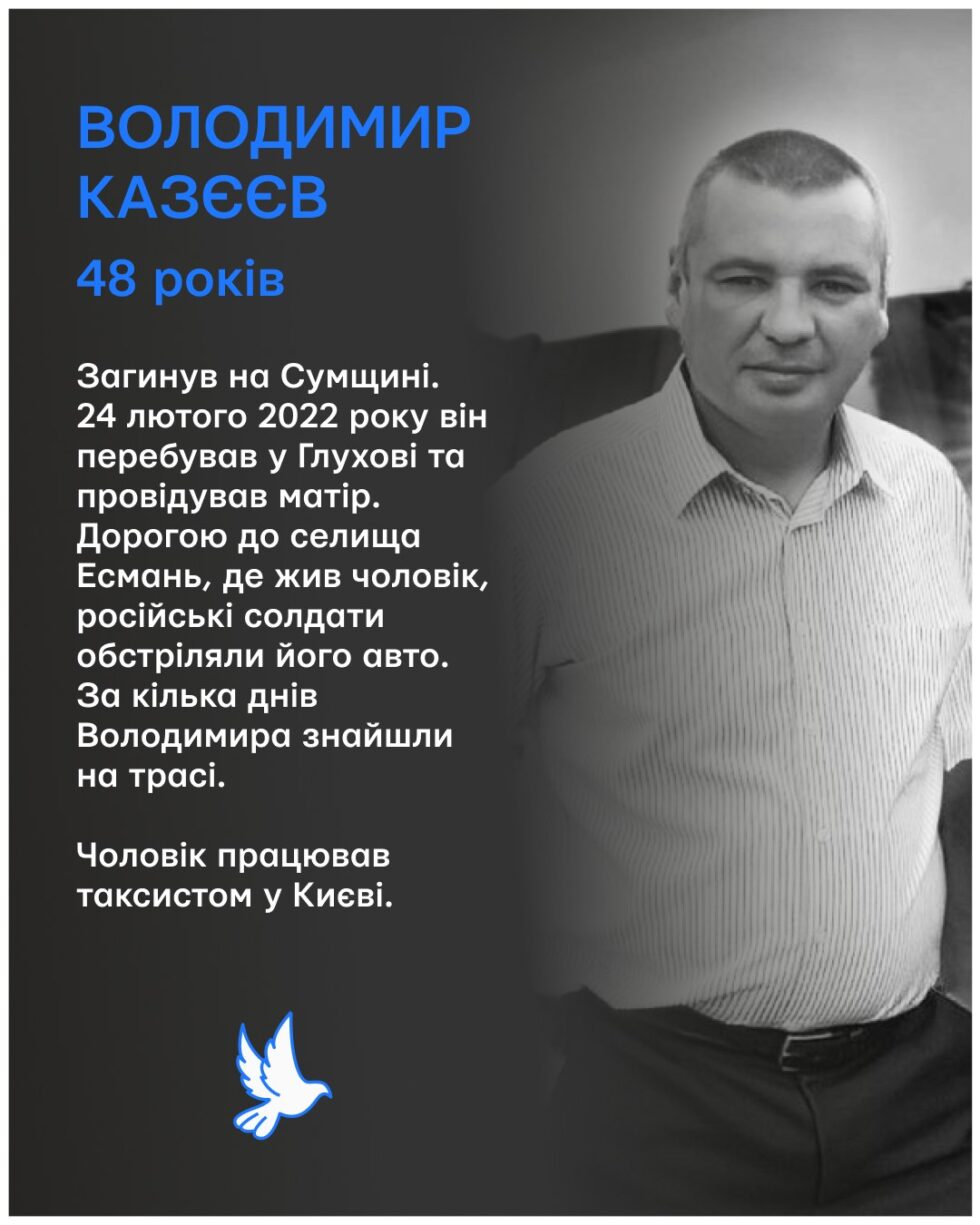 Меморіал зібрав імена та історії цивільних українців, яких вбила ворожа армія 24 лютого. Серед них наш земляк Володимир Казєєв.