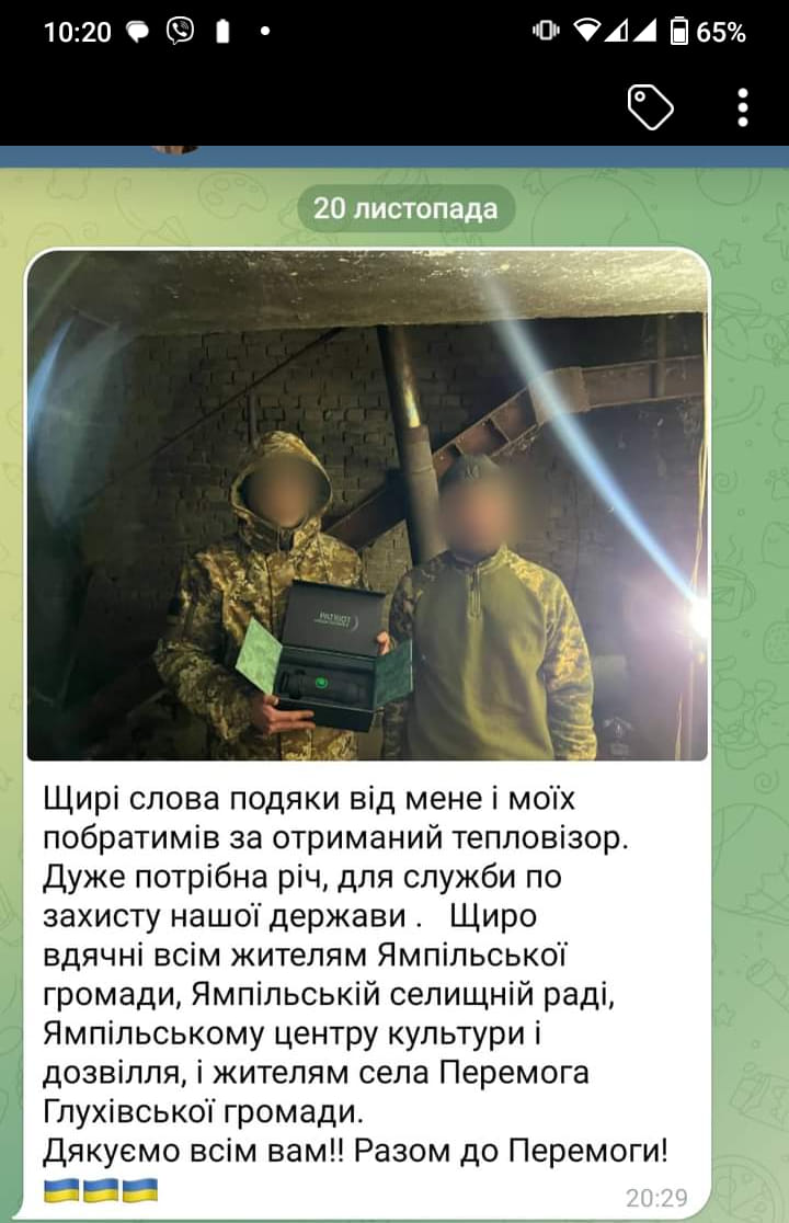 Спільними зусиллями переможці зібрали 11 679 гривень. Завдяки благодійним внескам воїни змогли придбати тепловізор. Захисники вже відзвітували перед всіма причетними до збору, висловивши слова подяки.